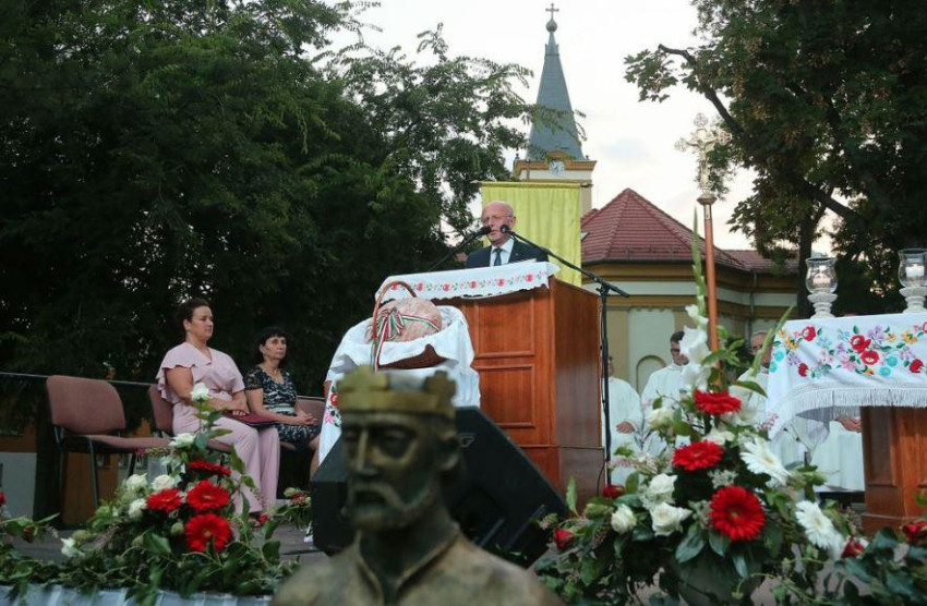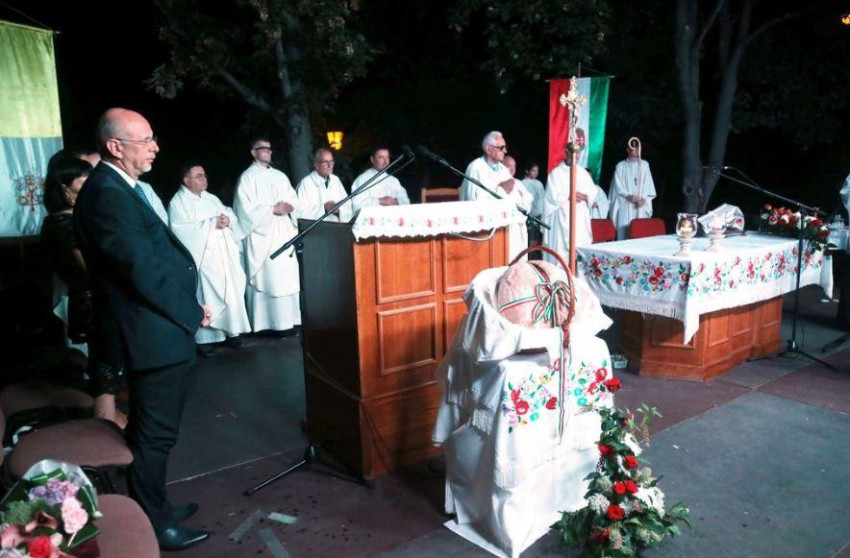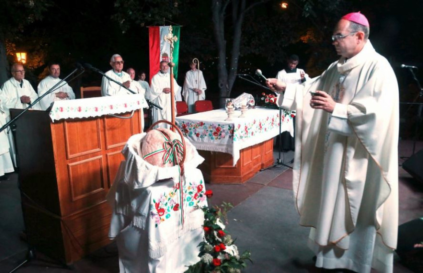 Ezt követően Székely János szombathelyi megyéspüspök celebrált szabadtéri szentmisét, amelyen megáldották Szent István kenyerét.