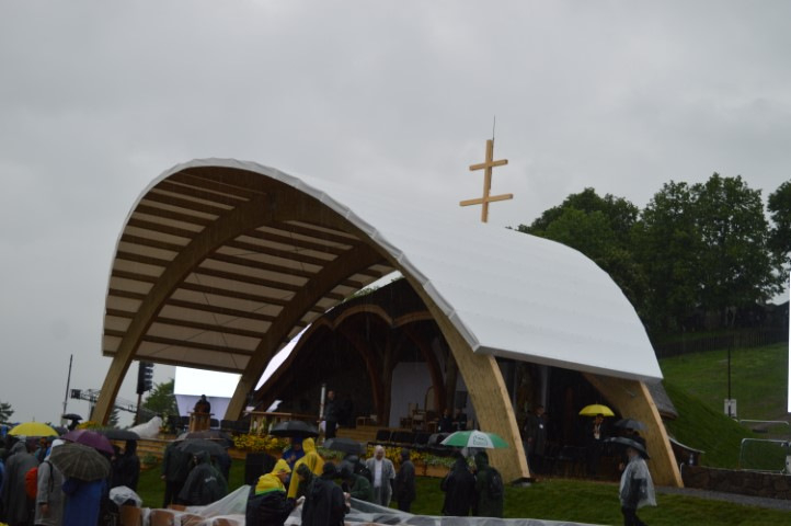 Noha az időjárás továbbra sem kedvező, hiszen az eső mellett köd ereszkedett a hegynyeregbe, a több ezer zarándok rendezetten és türelmesen várja Ferenc pápa érkezését. Folyamatosan érkeznek a hívek.