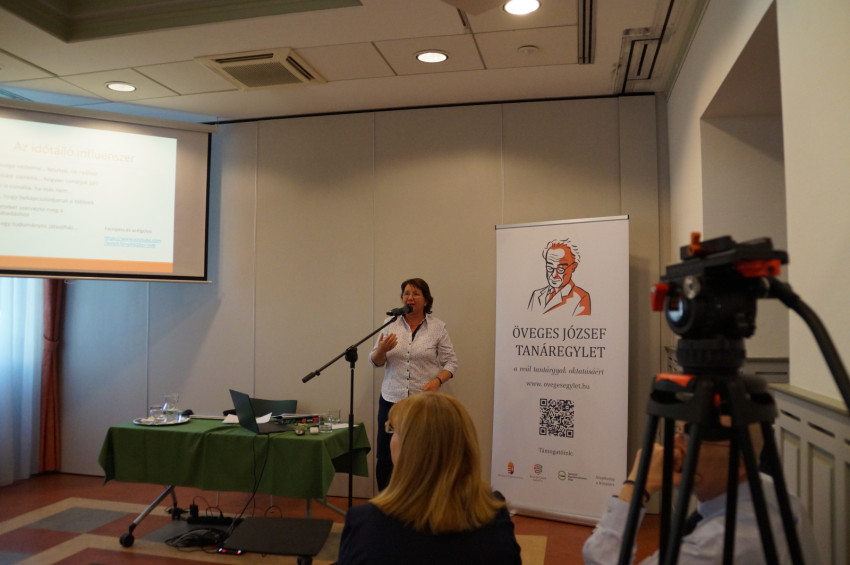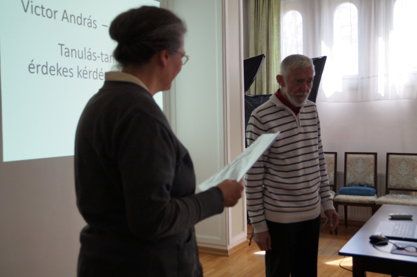 Szekér Borbála, az egyesület elnökhelyettese A 130 éve született Öveges József professzor üzenete című előadásában történelmi és pedagógiatörténeti folyamatban helyezte el és idézte fel Öveges professzor személyét.