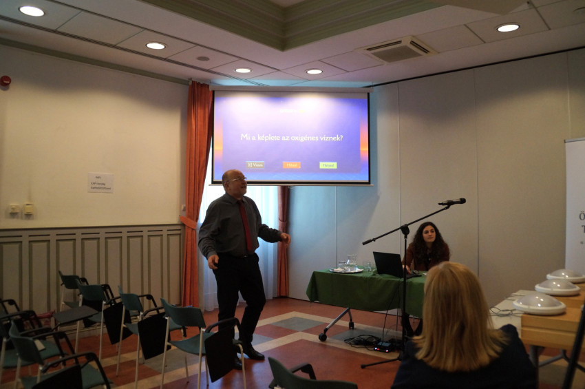 A Játékos tanulás szekcióban Nagy István, a szekszárdi I. Béla Gimnázium tanára interaktívan mutatta be, hogy a kémiát kvízgép segítségével hogyan tudja hatékonyan tanítani. Tapasztalata szerint