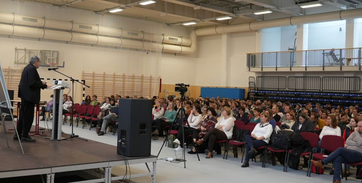 Az előadó Szerepvállalás és pedagógusidentitás a katolikus köznevelésben címmel három részben tartott személyes élményekkel átszőtt szakmai előadást, melyben Kodály Zoltán nyomán kifejtette: „Csak boldog gyermekből lehet boldog felnőtt, s csak ezekből lehet boldog ország.”