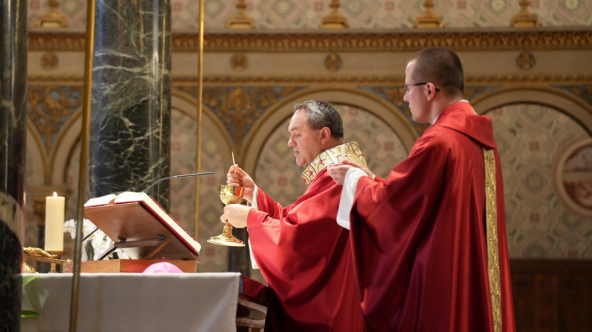 Az előadás után ünnepi szentmisén vettek részt a hitoktatók a pécsi székesegyházban, melynek végén Felföldi László megyéspüspök egyenként áldásban részesítette a katekétákat.