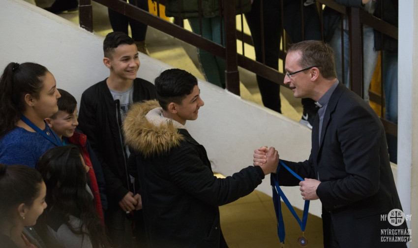 A rajzpályázat eredményhirdetését a középiskolákba való jelentkezés határidejének napján, február 19-én tartották, így az érmek és az ajándékok átadásakor a végzős diákok továbbtanulási szándékáról is érdeklődött az eredményeket kihirdető Szabó Tamás, az egyházmegye pasztorális helynöke és Orosz Rita, az egyházmegye cigánypasztorációs koordinátora.