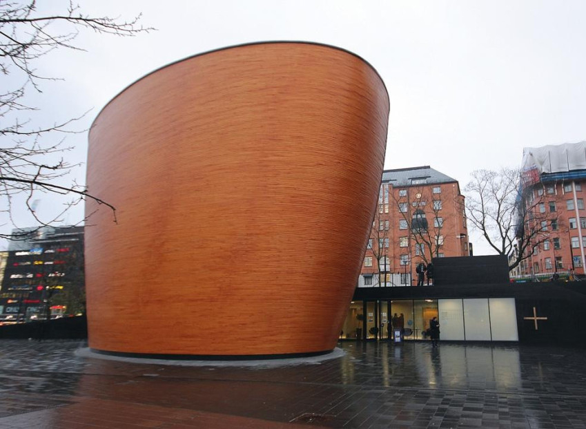 – A kötetből több jó példát is megismerhetünk a csendkápolnára. Ilyen a finn főváros, Helsinki egyik legforgalmasabb terén 2012-ben evangélikus kezdeményezésre felépült ökumenikus kápolna. Építtetői nyüzsgő környezetbe helyeztek el egy olyan helyiséget, amely a csendről szól.