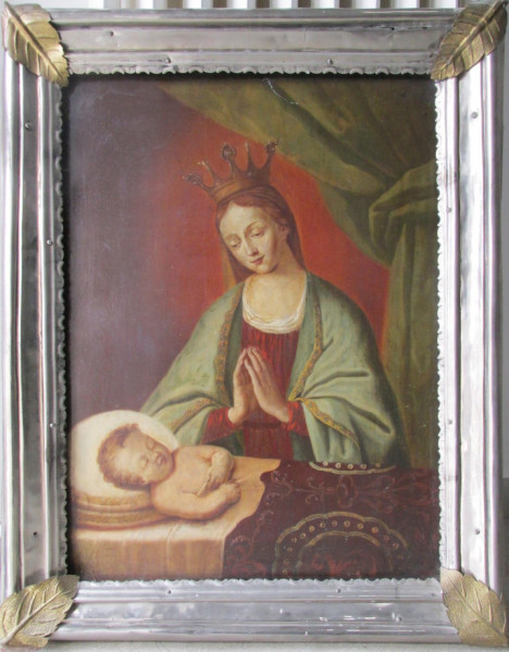 A Pannonhalmi Főapátság tulajdonában van a győri Könnyező Szűzanya-kegyképének egy ónlapra festett korai másolata. A másolat kalandos történetét a hátlapon bevésett, latin nyelvű feljegyzésekben olvashatjuk. Ezek szerint a győri Könnyező Szűzanya ónra festett képe Bécs egyik házának homlokzatát díszítette a XVIII–XIX. században. Nem ismeretes, hogyan került később a győri Rákócziánum püspöki konviktus tulajdonába, az viszont igen, hogy 1945 tavaszán onnan lelopták, utána pedig eladták egy régiségkereskedőnek. Később egy bencés pap fedezte fel és vette meg az 1770-ben készült alkotást a Főapátság számára. A szerzetesközösség a kép elhelyezésével is ki akarta fejezni a győri Könnyező Szűzanya iránti tiszteletét.