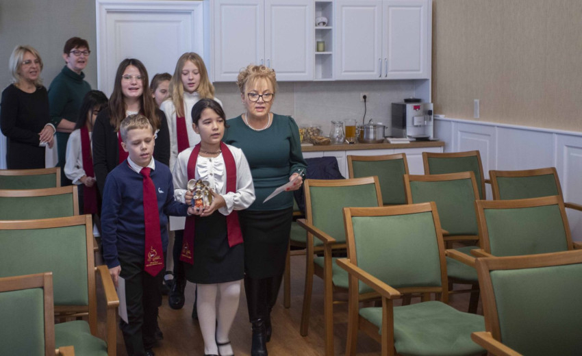 A gyermekek köszöntése megidézte a karácsony üzenetét, hangulatát. A szeretetteljes légkörben műsorukba a vendéglátók is bekapcsolódtak, és együtt énekeltek a gyermekekkel. „Azt kívánom, minden nap karácsony legyen / Azt kívánom minden szív legyen Betlehem!” – a diákok jókívánságai között a műsorban megérkeztek karácsony ünnepéhez, üzent a négy gyertya lángja is az adventi koszorún, igazi meghitt karácsonyi hangulatot teremtve.