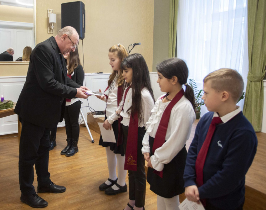 Imádságként és ajándékként élte meg a gyermekek műsorát Palánki Ferenc megyéspüspök, aki megköszönte a kedvességüket, és ő is ajándékozott kedvességet, mosolyt, figyelmességet, egy kis karácsonyi ajándékot, valamint gondolatot is: „A Jóisten nekünk ajándékozta Szent Fiát. Erre emlékezünk, amikor egymásnak ajándékot adunk. Ha Jézus ajándékát el tudjuk fogadni, meg tudjuk egymást ajándékozni azzal, amik vagyunk: képességeinkkel, értékeinkkel, lehetőségeinkkel, akkor mindennap karácsonyt élünk meg, mert ilyen ajándékot mindennap tudunk adni egymásnak” – fogalmazott.