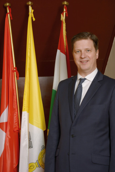 Habsburg-Lotharingiai Eduárd 2015 óta hazánk szentszéki nagykövete. Németországban született, ott végezte a középiskolai tanulmányait. Később Ausztriában, Olaszországban és Svájcban tanult, nagyköveti kinevezéséig az egyik osztrák egyházmegye sajtószóvivőjeként dolgozott. A főherceg a Habsburgok magyar ágából származik. Apja Magyarországon született, de 1944-ben, kétévesen Németországba menekült családjával a Vörös Hadsereg elől. Habsburg-Lotharingiai Eduárd 1967-ben született. Felesége az osztrák Marie-Therese Gudenus. Öt lányuk és egy fiúgyermekük van.