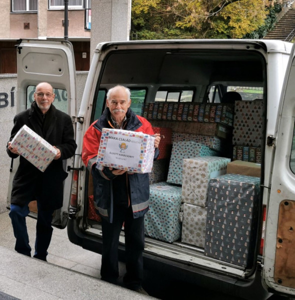 Nagy feladat a csomagok célba juttatása, erre mindig kevesebb a jelentkező. Nagy ajándék volt most, hogy egy Bicskén dolgozó kolléga, Sárkány Orsolya jelentkezett és sok mindent vállalt: két autóval vittek egy pesti és egy vidéki kört, voltak Tatárszentgyörgyön és Kókán is, 16 címre mentek ki, családtagok segítségével.
