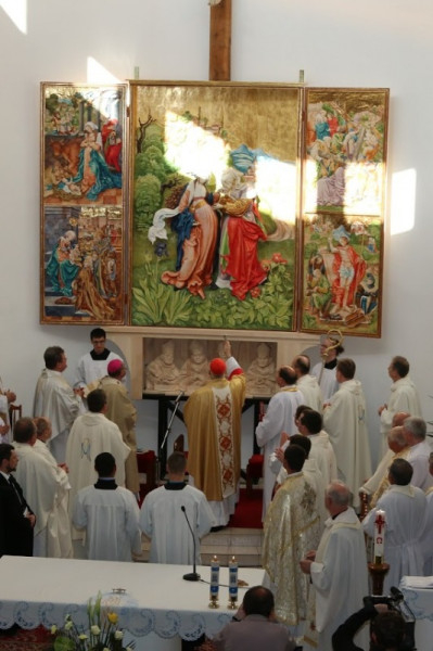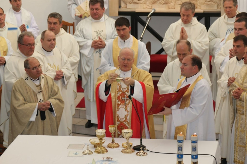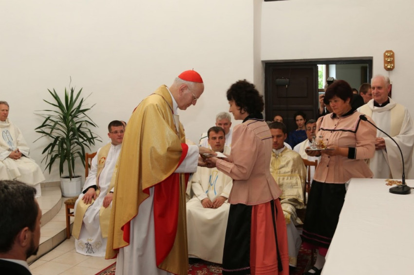 5. A mai szentmisében új iskola alapkövét áldjuk meg. A katolikus iskola küldetése a színvonalas oktatás és nevelés, de egyben a keresztény világnézet és életstílus átadása is. Ez pedig a legteljesebb módon segíti elő az emberi személy kibontakozását, hiszen az ember szerves egységet alkot: hitet, tudást, világnézetet nem lehet a szívünkben mereven elválasztani egymástól. Nem szakadhat el egymástól az elmélet és a gyakorlat sem. Hitünk szerint az igazság és a jóság, az igazságosság és az irgalom megbonthatatlan egységet alkot. Ez az egység Istenben tökéletes, Jézus Krisztusban pedig, a megtestesült Igében Isten kinyilatkoztatta, hogy ezek a tulajdonságok az ember életében is egyesülni tudnak. Szűz Mária egyszerre imádta szent fiát és kísérte gondoskodó szeretetével, ugyanakkor nevelője is volt és segítette emberi kibontakozását. Kérjük a Fatimai Szűzanyát, akit az egyház a mai napon ünnepel, hogy kísérje gondoskodó szeretetével az új iskolát, iskoláink és közösségeink együttműködését, Egyházunkat és népeinket itt, Közép-Európában és szerte az egész világon.