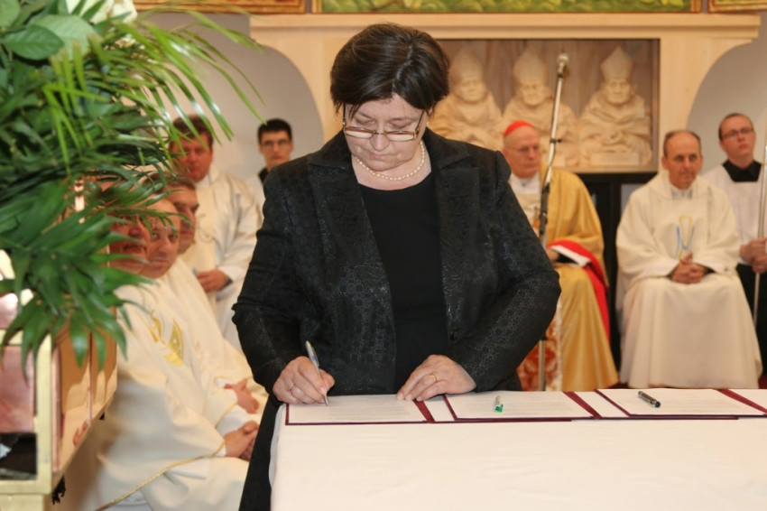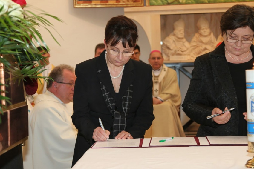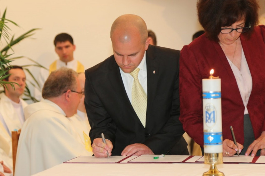 A szentmise végén került sor a Budapest XVIII. kerülete egyházi iskoláinak és a szepsi Boldog Salkaházi Sára egyházi iskolaközpont testvériskolai egyezményének aláírására és a Szepsiben épülő egyházi iskolaközpont alapkövének a megáldására.
