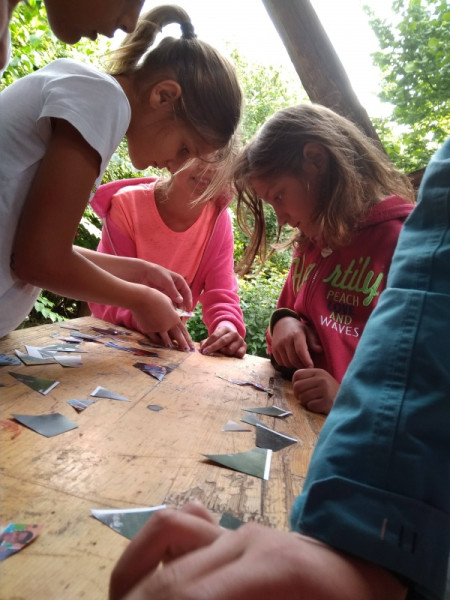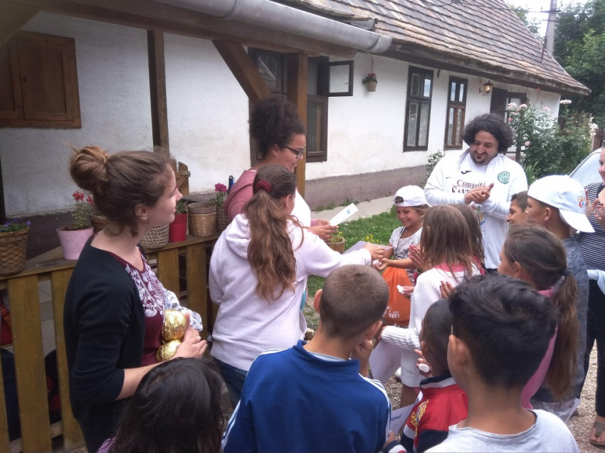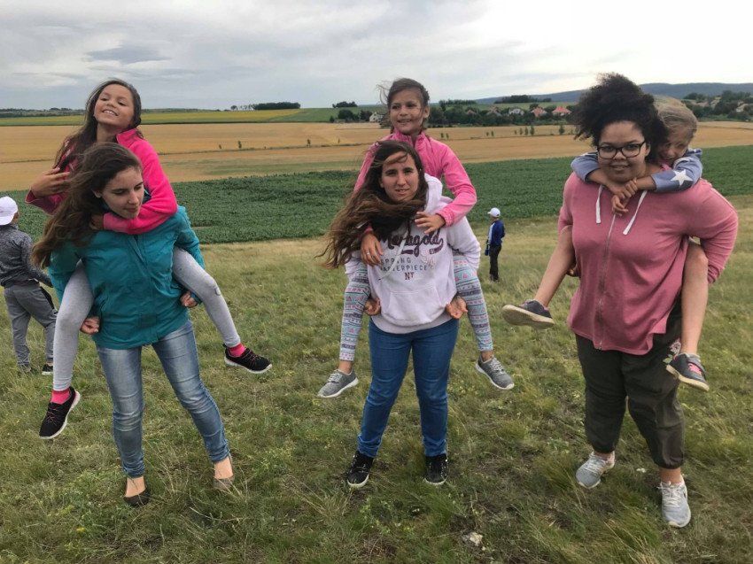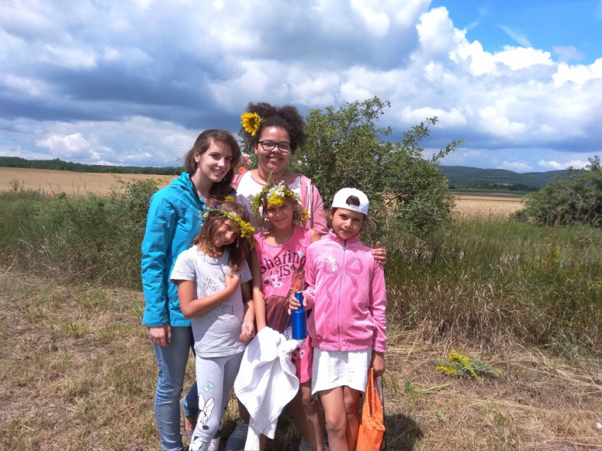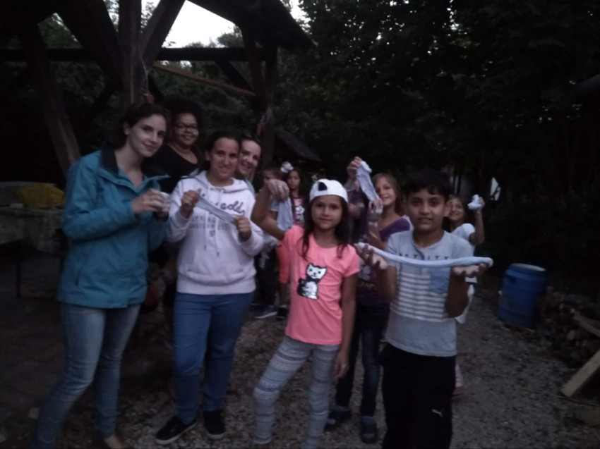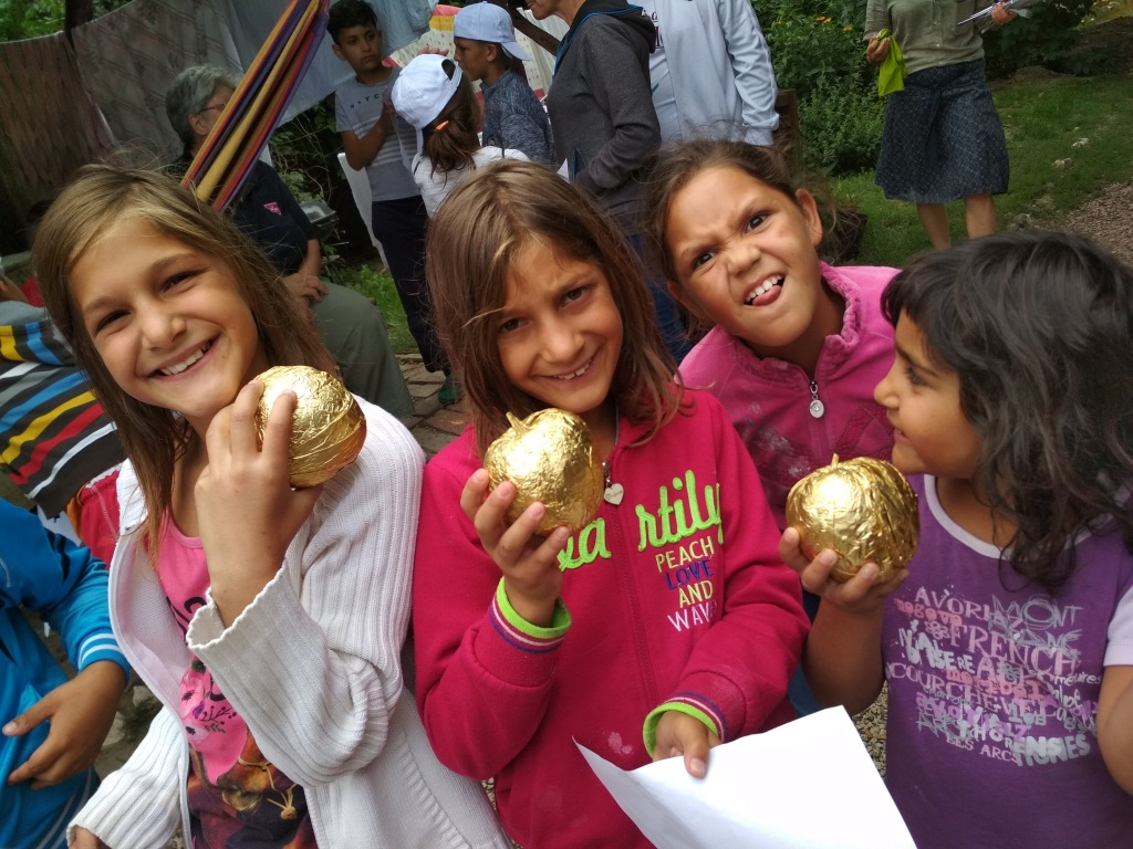 Keretmesével készültünk: a király fájáról ellopták az aranyalmákat, azokat kellett különböző feladatok teljesítésével visszaszerezni – ha nem is sikerült minden feladatra sort keríteni, az aranyalmákat megszereztük. Igyekeztünk a kedvükben járni, volt esti mozizás popcornnal, slimekészítés, buli, tánc, olyan dalokkal, amit ők szeretnek…