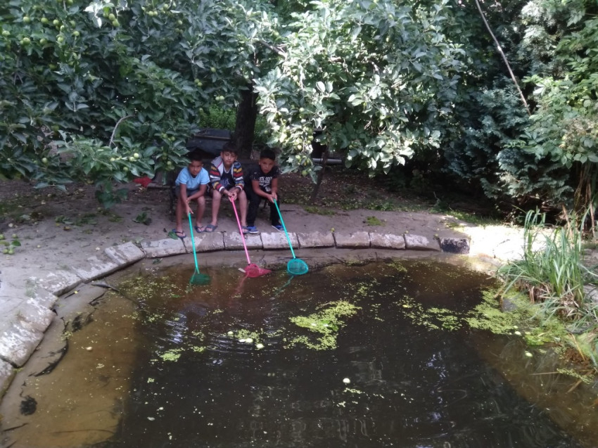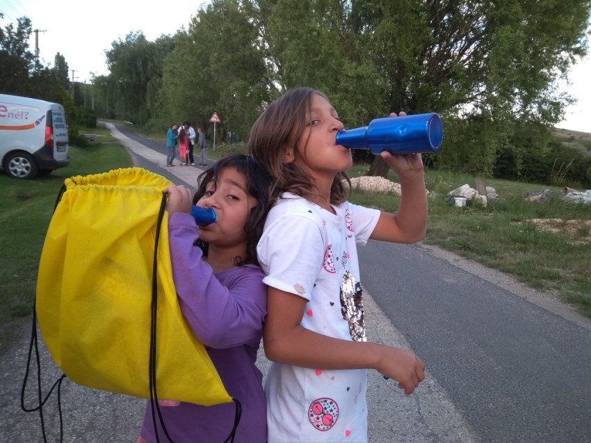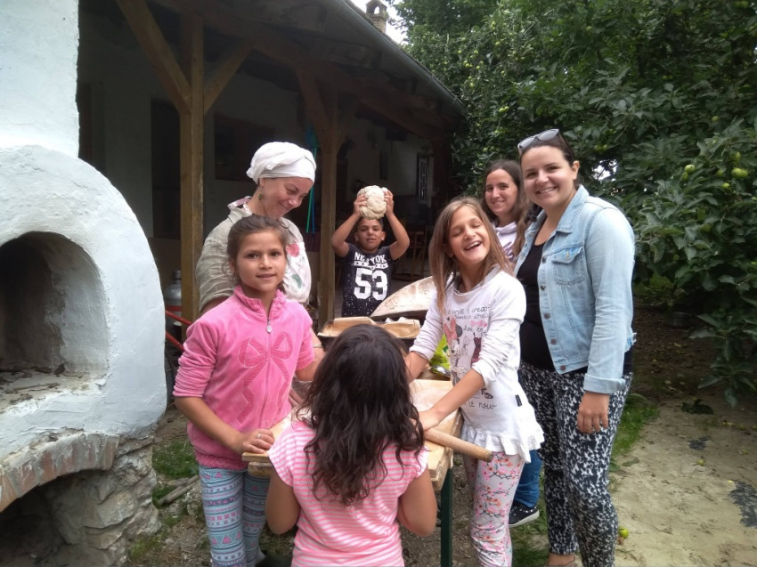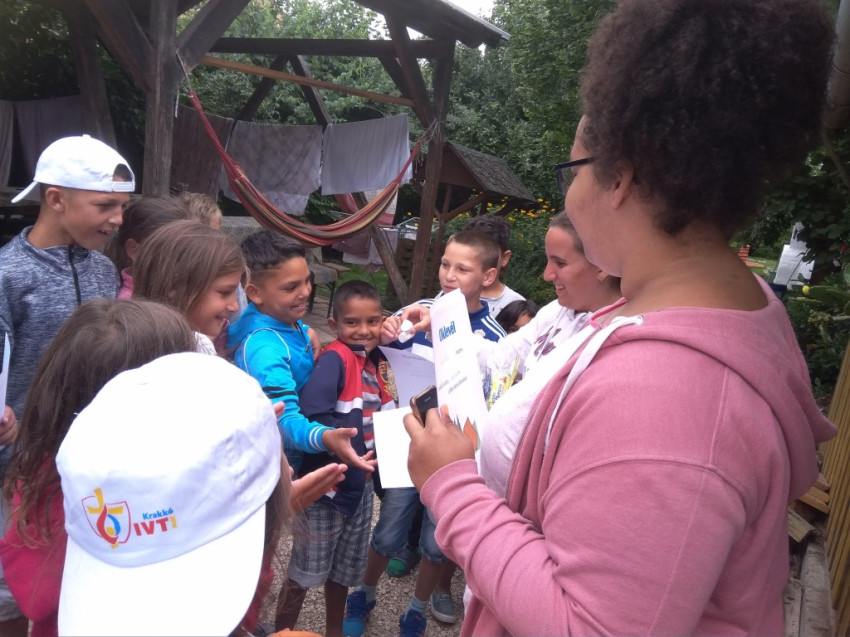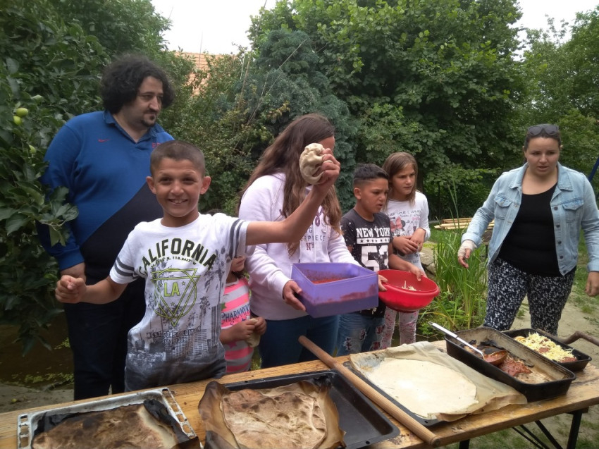 „Egy éve ismertük egymást, átéltünk sok szép pillanatot, együtt játszottunk, tanultunk, kézműveskedtünk, beszélgettünk, összebarátkoztunk az alsó tagozatos gyerekekkel. Szorosra fűződött a barátság – még ha ez sokszor a pillanatnyi hangulatuktól függ, olykor nem annyira egyértelmű – és úgy döntöttünk, elvisszük őket közös nyaralásra. A pasaréti Karitász és a Zoborhegy téri plébánia segítségével sikerült elutaznunk Szárra, a Konkoly Edit vezette Élni jó házba, ahol a ház nevéhez méltóan valóban vidám napokat töltöttünk, igazi vendégszeretet vett körül minket. Edit már érkezésünkkor bevezetett minket csodás birodalmába, fateknőben tésztát kelesztettünk, kemencében együtt sütöttük a pizzát, a gyerekek hatékony segítségével. Azt már előre tudtuk, hogy érkezés után nem tudjuk azonnal elkezdeni a tervezett programokat, mert a fürdőszoba ellenállhatatlanul vonzza a gyerekeket – nem mindenkinél van otthon saját fürdőszoba, sokan közös fürdőbe járnak. Nagy élmény volt, hogy lehetett kádban fürdeni, volt olyan kislány, aki az első nap háromszor mosott hajat.