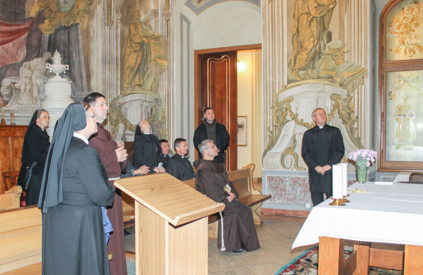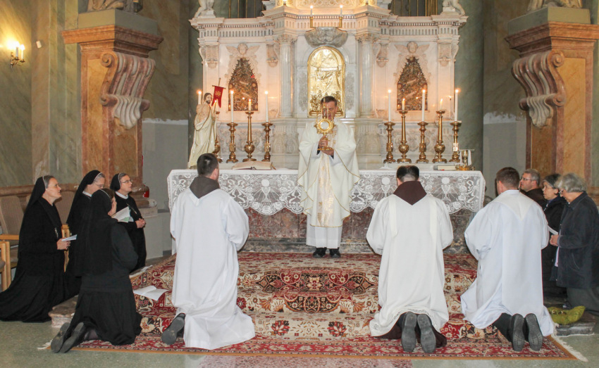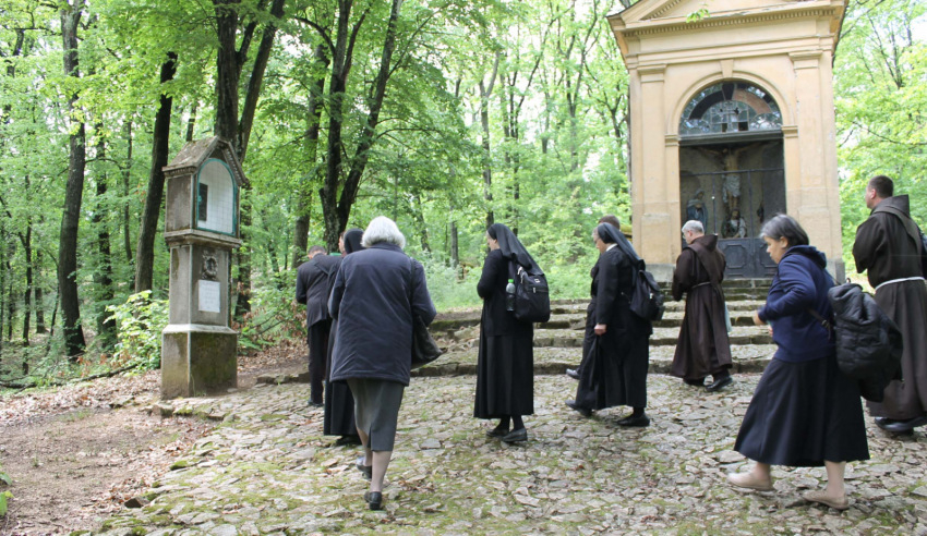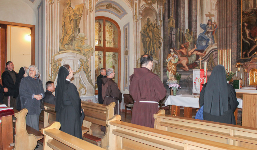 A máriaradnai kegytemplomban szentségimádáson is részt vettek, mely alkalommal a papi és szerzetesi hivatásokért imádkoztak, majd a bazilika és a kolostor történetének megismerése után keresztutat jártak a templom melletti kálvárián. A zarándoklat résztvevői az otthon maradt szerzetesekért is imádkoztak, kérve Isten kegyelmét szolgálatukra.
