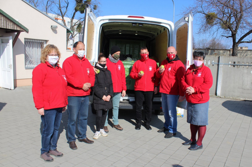 Március 18-án Csornáról kereste meg a segélyszervezetet Családi János, a Hanság-Fertőmenti Szövetkezet elnöke, hogy tavalyi nagy mennyiségű almaléadománya után ezúttal csaknem 7200 kg étkezési almát ajánljon fel.