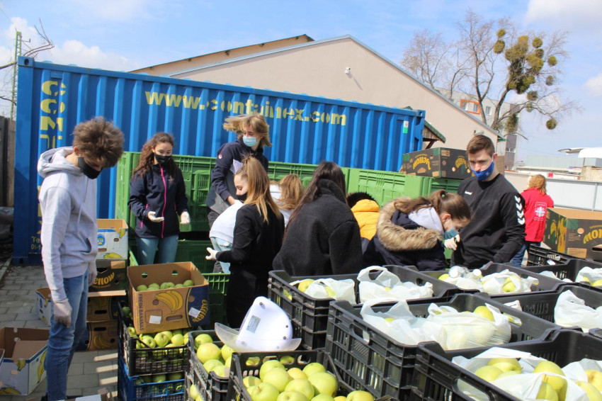 Az adományok válogatásában, csomagolásában és rakodásában a járványügyi előírások betartása mellett mintegy negyven fiatal önkéntes vett részt, akik iskolai közösségi szolgálat keretében segítettek a szervezet központjában, a győri Apor Vilmos Házban.