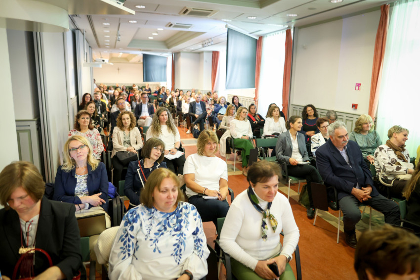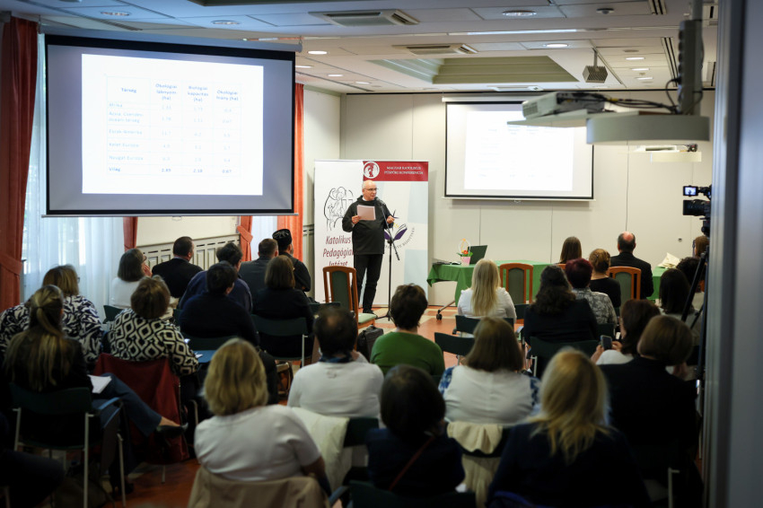 Ebéd után Bánlaki Zsanett, az MKPK Caritas in Veritate Bizottság irodavezetője és Nyiri Andrea, a Katolikus Pedagógiai Intézet teremtésvédelmi munkacsoportjának szakmai vezetője mutatta be a Teremtésvédő Óvoda, Iskola és Kollégium címet.