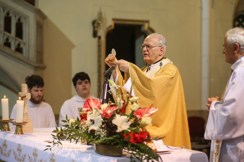 „A plébánia a II. vatikáni zsinat és a mai egyházfegyelem szerint a hívek közössége, amelyet egy papra bíznak, mint saját pásztorára, hogy a püspök vezetése alatt gondozza azt.” – kezdte szentbeszédét Erdő Péter bíboros. Ezt a plébániát korai időszakában a domonkos szerzetesek gondozták, kiemelkedik közülük Badalik Bertalan, a későbbi hitvalló életű veszprémi püspök. A szerzetesrendek feloszlatása utáni időszakból Sík Zoltán atya szolgálatára sokan ma is szeretettel emlékeznek. Nagy Károly atya 2007 óta plébánosa a templomnak, Erdő Péter bíboros köszönetet mondott neki „lelkipásztori szeretetéért és odaadó munkájáért”.