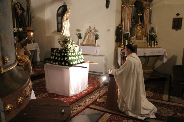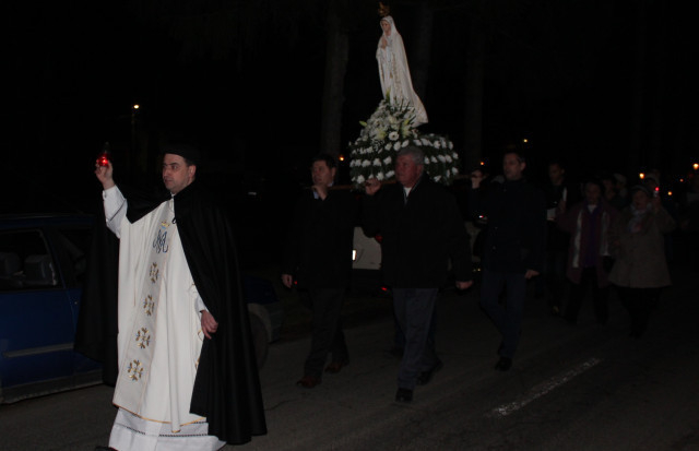 A szentmise végén az ünneplők körmenetben vonultak a falu főutcáján, majd a templomba visszatérve Perger Gyula plébános vezetésével imádkoztak a Fatimai Szűz Máriához.