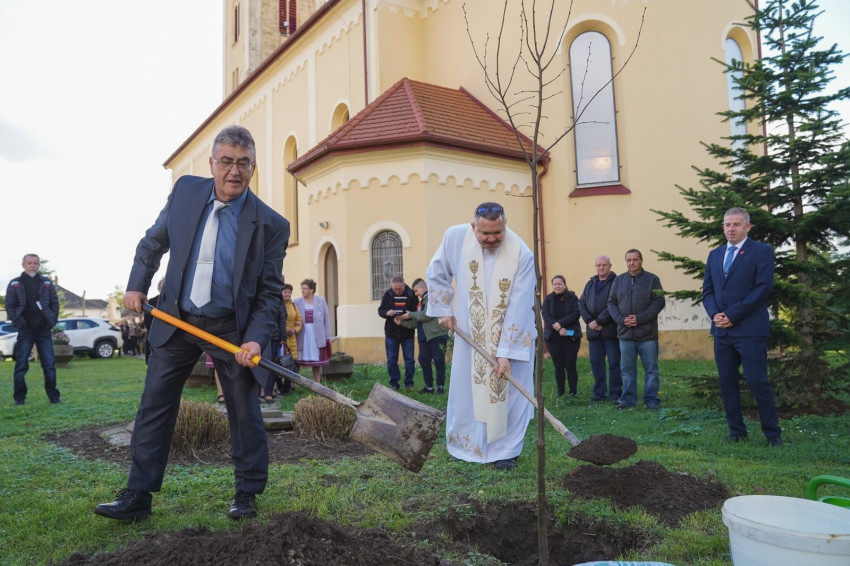 A szentmise záróáldását követően a hívek a templomkertbe vonultak, ahol – mint száz évvel ezelőtt eleik – hársfát ültettek a jeles alkalomból.
