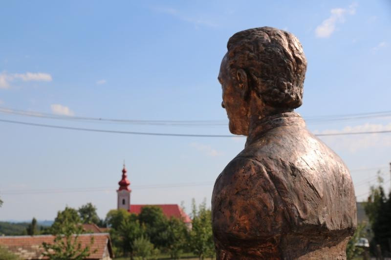 A mellszobor a községből származó két, jelenleg külföldi szolgálatban álló lelkipásztor – Balga Zoltán prágai magyar lelkész és Miskei László kanadai magyar lelkész – támogatásával valósult meg. Felismerve a jubileumi templombúcsú jelentőségét, melynek megünnepléséhez a nagy távolság ellenére ők is hozzá akartak járulni: javaslatukra és adományaikból készült el a műalkotás, mely Oláh Szilveszter szobrászművész munkája.