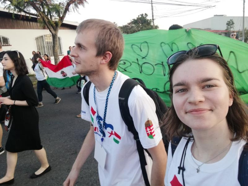 „Íme, az Úr szolgálóleánya, legyen nekem a te igéd szerint” (Lk 1, 38) – ezzel a bibliai igerésszel vágtunk neki 2019. január 17-én a panamai Ifjúsági Világtalálkozó előtalálkozójának, melyet a közép-amerikai Costa Ricán rendeztek meg. Öt felejthetetlen napot tölthettünk ott az ottani lakosok nyújtotta szeretetben. 40 fős magyar csapatunk helyi családoknál kapott szállást, így testközelből ismerkedhetünk meg az ottani hétköznapi élettel, mely sok meglepetést tartogatott számunkra. Érkezésünkkor felejthetetlen fogadtatásban volt részünk. A ránk váró családok tagjai ujjongva és tapsolva üdvözölték magyar delegációnkat. Az ott töltött idő minden percét kihasználtuk, így részt vehettünk több szentmisén, szentségimádáson, koncerten, kiránduláson és egy karibi hangulatú körmeneten is. Ezeken az eseményeken több száz fiatallal együtt élhettük meg az összetartozást örömét. Nem számított, hogy ki milyen nemzetből származik, ott mindnyájan egyek voltunk: Isten gyermekei. Az egyik legemlékezetesebb pillanat számomra az Irazú vulkánhoz tett kirándulásunk volt, ahol magyar csapatunk 3400 méter magasan, a felhők fölött járhatott. A lélekemelő látvány, amely ott fogadott minket, teljesen magával ragadott mindenkit. Számomra az előtalálkozó legmeghatározóbb élménye azonban a befogadó családommal eltöltött idő volt. Az az öröm és szeretet, amit ennyi idő alatt kaptam tőlük, felbecsülhetetlen és leírhatatlan számomra. Általuk még jobban megtapasztalhattam, hogy katolikusként mennyire nagy szükségünk van egymásra, a közös hitünk tüzének táplálására. Ezeknek a csodálatos embereknek köszönhetően méltóképpen felkészülhettünk a Szentatyával való találkozásra, melyre magán az Ifjúsági Világtalálkozón, Panamavárosban került sor.