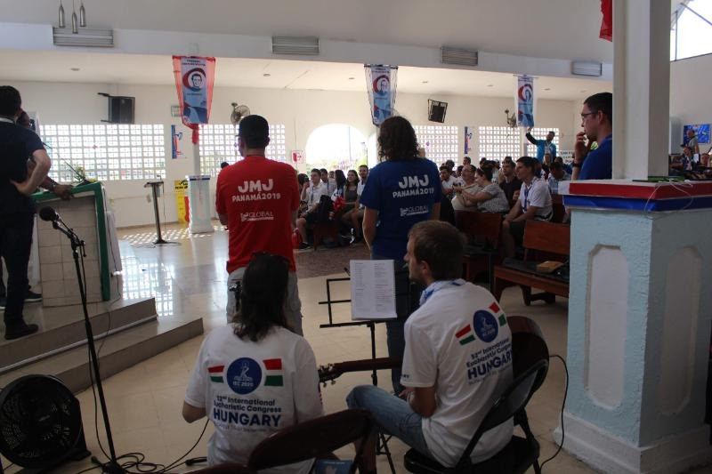 Costa Ricából húszórás buszút után jutottunk Panamába. A minket befogadó családok hatalmas szeretettel és kitörő lelkesedéssel fogadtak minket. Annak ellenére, hogy nehéz körülmények között élnek, hihetetlen odaadással voltak irányunkba. Megosztották velünk házaikat, ételüket, illetve mindennap, amikor visszaértünk a programokról, kijöttek elénk a buszhoz, hogy együtt hazamehessünk (még ha ez éjfélt is jelentett). A program felépítés hasonló volt mindennap. Délelőttönként katekézisen és szentmisén vettünk részt a román fiatalokkal együtt, ezeket Böcskei László püspök atya tartotta. A városban minden este koncertek szóltak és szentségimádást tartottak, melyekre sok szeretettel várták a résztvevőket. A délutáni programok voltak a legváltozatosabbak. Első délután megnéztük a város néhány templomát, illetve az óceánhoz is kisétáltunk. Másnap délután a résztvevő nemzetekkel közösen fogadtuk a pápát. A következő nap a megszokottól eltérően zajlott. A szokásos katekézis helyett egy sajátos szertartás keretében mindenki a plébánia falán hagyta kéznyomát, illetve egy-egy követ is kaptunk a helyiektől, annak jeleként, hogy az ott kapottakat befogadtuk, és az IVT után szeretnénk elvinni saját otthonunkba, városunkba, hazánkba is. A délutánt pedig az óceánparton töltöttük. A következő nap délelőtt szabad foglalkozás volt, valaki vásárolni ment, valaki még várost nézett (nekem ekkor volt időm felvenni az óráimat), délután pedig kizarándokoltunk a virrasztás helyszínére. Itt egy-két koncert után közös imádság, szentségimádás következett. Hatalmas élmény volt, amikor az egész tömeg teljes csöndben az Oltáriszentségre figyelve imádkozott. Még este körbementünk néhányan, és fényképezkedtünk néhány fiatallal, valamint osztogattuk az Eucharisztikus Kongresszusról szóló szóróanyagot (ezt a küldetést amúgy egész héten végeztük). Másnap reggel volt a pápai szentmise, melynek végén a Szentatya bejelentette a következő világtalálkozó helyszínét: Lisszabont. A mise után gyors összepakolást követően indultunk is vissza Costa Ricába, ahol a repülőre felszállva ismét Európa felé vettük az irányt. Panamában igazán megtapasztalhattuk, hogy milyen is Krisztushoz tartozó fiatalnak lenni. Megtapasztalhattuk, hogy milyen több százezer fiatallal közösen imádkozni, megtapasztalhattuk az Egyházhoz tartozás örömét, de megtapasztalhattuk azt is, hogy néha bizony ki kell lépnünk a komfortzónánkból a nagyobb jó érdekében, ugyanis amellett, hogy nagyon jó hangulatban telt a találkozó, nemegyszer kerültünk kényelmetlen helyzetbe. De bármi is történt velünk, minden helyzetből gyarapodhattunk, hiszen „...akik Istent szeretik, azoknak minden javukra válik...” (Róm 8, 28).