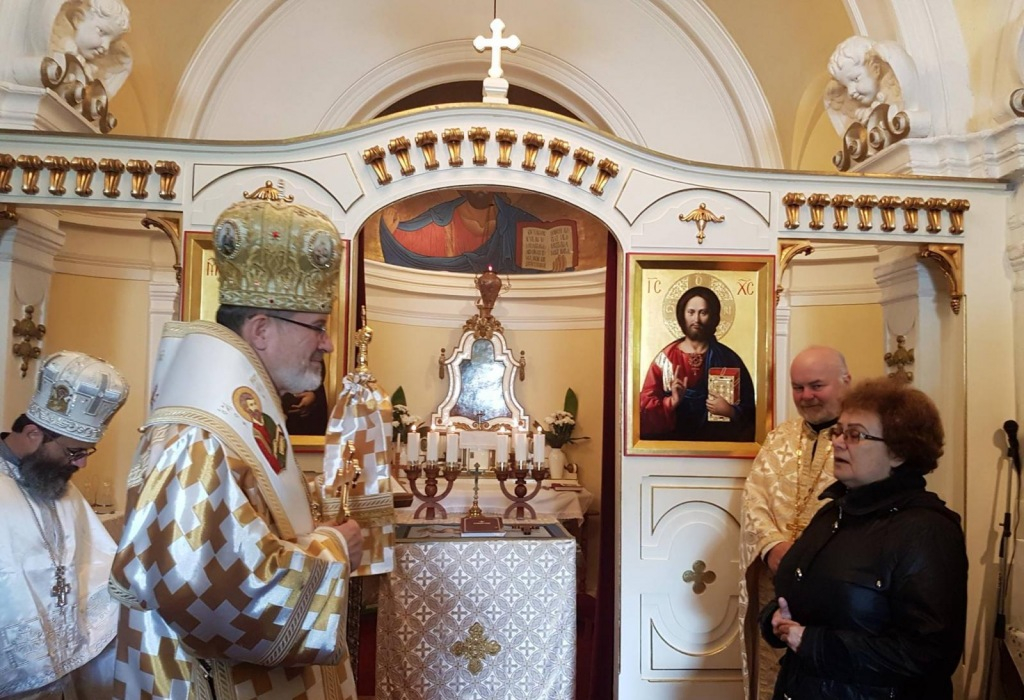 A Szent Liturgia előtt Bakos Mira és Szaplonczay Márk köszöntötte a vendéget előbb ukrán, majd olasz nyelven. A szertartás végén a püspök megköszönte, hogy a szegedi görögkatolikus egyházközség húsz éve minden nyáron gyerekeket fogad Kárpátaljáról.