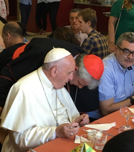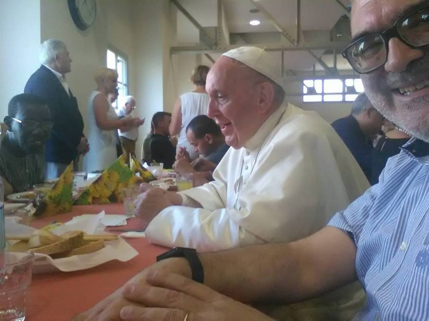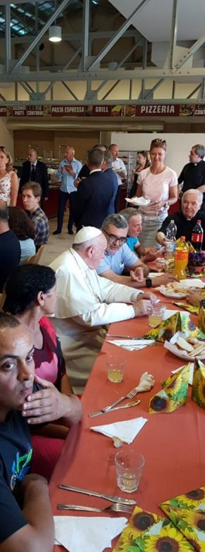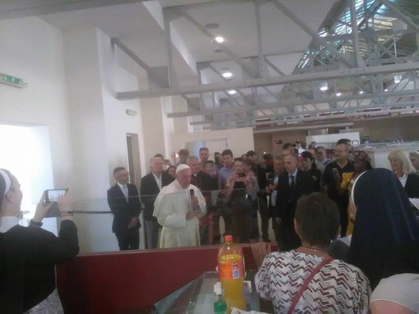 Volt fogvatartottakkal is beszélgetett a pápa, aki gyakran azonosítja magát a szegény és a fogvatartott emberekkel: „Miért nem én?” – tette fel ismét a kérdést. Meséltek neki egy alkoholista hajléktalan barátjukról, és ő hangsúlyozta: „Az alkohol problémája mindenkit elérhet, egy olyan rosszról van szó, ami magával ragad, ami nem enged szabadulni, egy olyan rosszról, amiből csak mások segítségével vagy képes kijönni. Nekünk, úgy is mint Egyháznak, az a dolgunk, hogy segítsük az embereket kiszabadulni nehéz helyzetekből, velük együtt tegyük meg ezt az utat.”