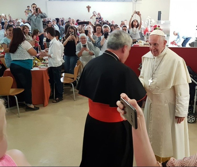 Ferenc pápa megáldott egy szíriai kislányt, aki néhány hónappal ezelőtt Rómában született menekült családban. Nagyon sok gyerek volt a vacsorán, játszottak, vidám légkör alakult ki körülöttük. A Szentatya megjegyezte, nagyon megrendíti, ami Texasban történik az édesanyjuktól elszakított menekült gyerekekkel.