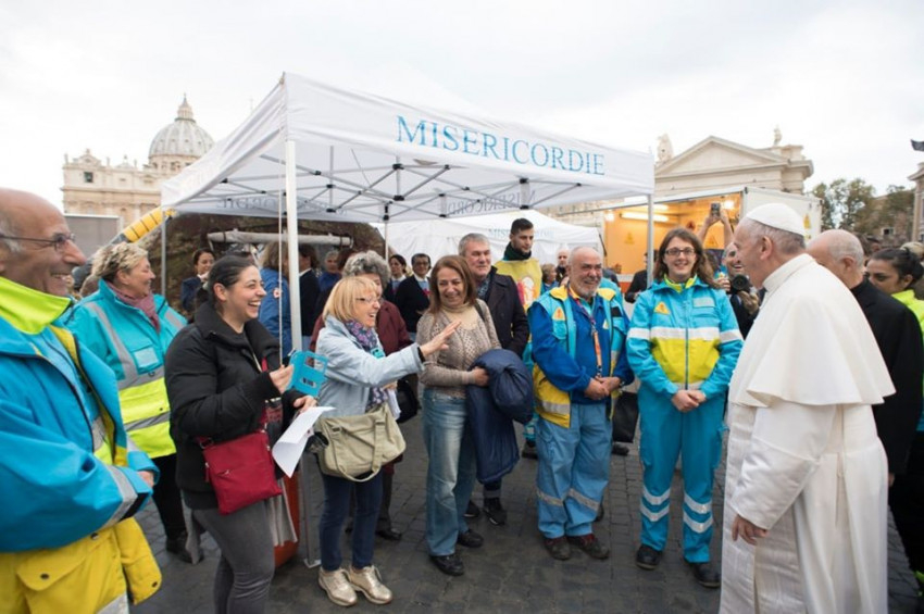 Meglepetésszerűen érkezett Ferenc pápa e kicsiny, de igen hatékony ideiglenes kórházba. A kíséretében lévő Rino Fisichella érsek bemutatta neki a szakorvosokat, akik között vannak szívspecialisták, diabetológusok, szemorvosok, radiológusok. Jelen voltak a szolgálatot teljesítő önkéntesek is.