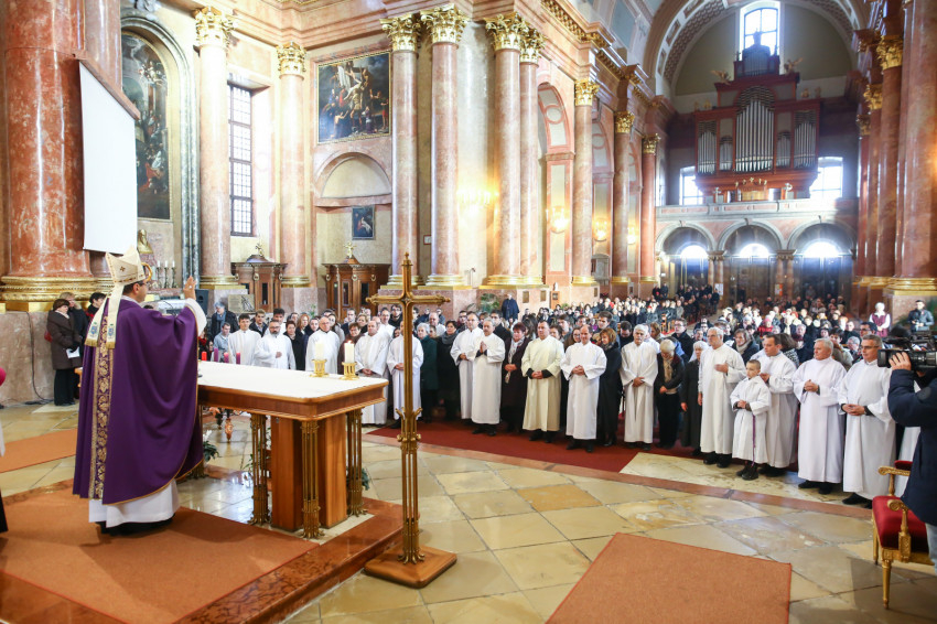 A főpásztor a szentmise kezdetén szeretettel köszönt mindenkit, de különösen a paptestvéreket, köztük Martos Levente Balázst és Köbli Tamást, az akolitusképzés korábbi és mostani vezetőjét, valamint az akolitusavatásra érkezetteket, feleségeiket, gyermekeiket és más családtagjaikat.
