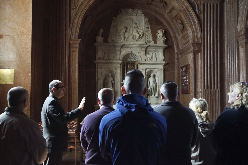 A csoport tagjai reggel még nem tudták, hová indulnak; nagyon meglepődtek és megtisztelve érezték magukat, amikor kiderült, hogy Székely János püspök a vendéglátójuk. Ő pedig a Bakócz-kápolna történetének ismertetése után – amelyet egy ideig török mecsetként használtak, és a korábbi, lerombolt bazilika egyetlen megmaradt része volt – életünk összeomlásairól és újrakezdéseiről, „feltámadásairól” beszélt nekik. Ahogyan Isten egy kis maradékot megőrzött a bazilikából, amely az újrakezdés kiindulópontja lehetett, ugyanúgy bennünk is mindig tovább élteti az új élet reményét. Az emberek elhagyhatnak, az Isten azonban hűséges marad hozzánk, és újjáépíti, ami összeomlott az életünkben – hangsúlyozta. Ezután pedig arra kérte a jelenlevőket, hogy imádkozzák vele el a Miatyánkot, és énekeljék el a régi magyar himnuszt, a Boldogasszony Anyánkat. A program következő pontja a közös ebéd volt a Szent Adalbert Központban, majd a Keresztény Múzeumba sétált át a csoport.