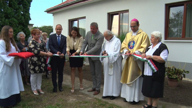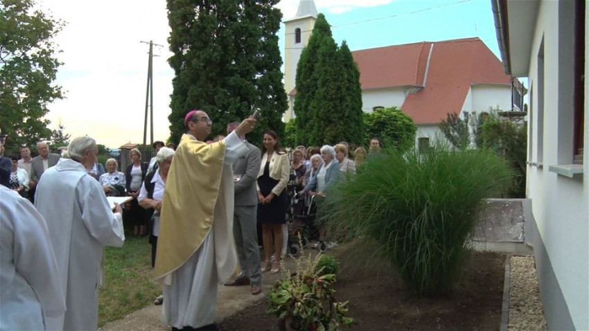 Az ünnepség a felújított plébániaház megáldásával folytatódott. Pályázati források – közte a Magyar Falu Program jóvoltából – sikerült az épület tetőzetét lecserélni, több helyiséget átalakítani, felújítani, hogy alkalmas legyen közösségek befogadására, programok lebonyolítására.
