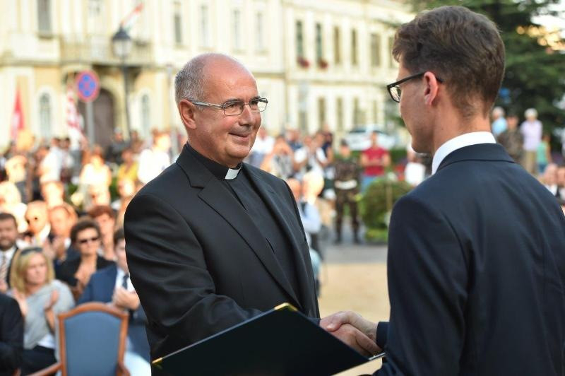 Ugrits Tamás pápai káplán, irodaigazgató, szentszéki bíró, a Szent Imre Általános Iskola és Óvoda iskolabiztosa, püspöki tanácsos Székesfehérvár Pro Civitate díját vehette át augusztus 20-án.