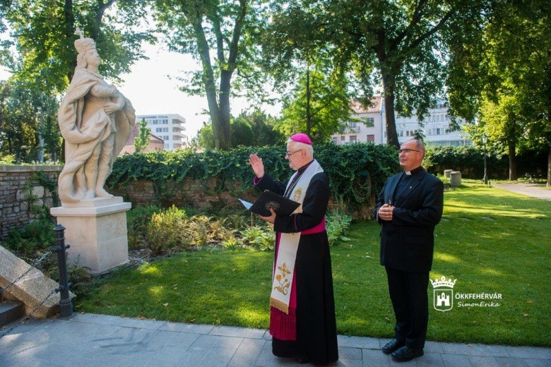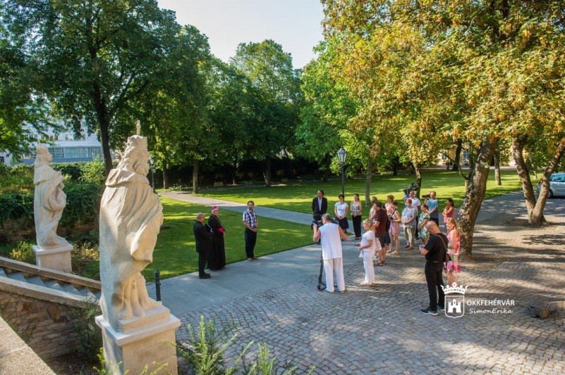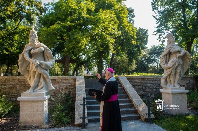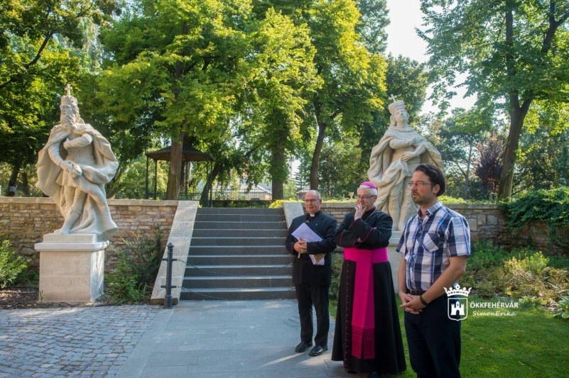 A sajtóeseményt követően Spányi Antal püspök a püspökség udvarán megáldotta Huber János Pál szobrászművész 1773-ben készült, Szent Istvánt és Szent Imrét ábrázoló barokk szobrait, melyeket a székesfehérvári Szent István király-székesegyház külső felújítása miatt emeltek le az épület homlokzatáról és helyezték el a püspöki palota 2017-ben felújított kertjében, megfelelő védelmet biztosítva számukra.