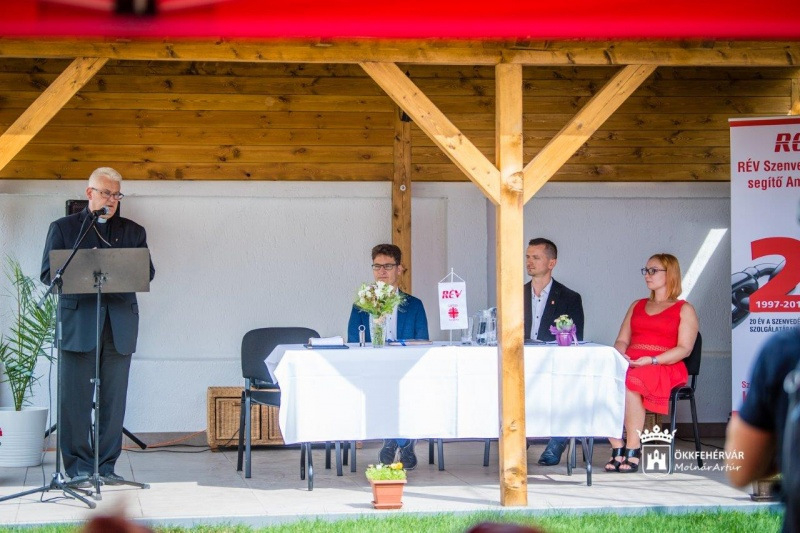 Cser-Palkovics András székesfehérvári polgármester beszédében kifejtette: augusztus a szabadságolásokról, a pihenésről és a napsütésről szól, de sajnos van, akinek ebből kevesebb jutott. Rájuk is oda kell figyelni, ami közös feladatunk és felelősségünk. A legnehezebb, hogy egy ember maga is belássa, bajban van, majd megtalálja a szakembereket, akikben megbízhat. „Meg kell becsülnünk azokat, akik a szakmai segítséget megadják a bajba jutottaknak és családjaiknak. Fontos, hogy a családtagok, a barátok, az ismerősök tudják, hogy ők kihez forduljanak segítségért. A RÉV ebben segít Székesfehérváron immár több mint két évtizede.”