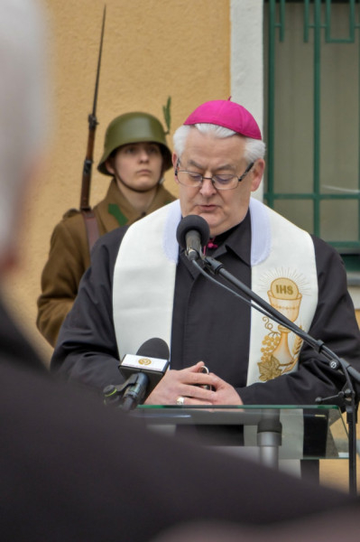 A megjelent állami és katonai vezetők, Székesfehérvár képviselői és a főpásztor vezetésével a táblánál elhelyezték az emlékezés virágait.