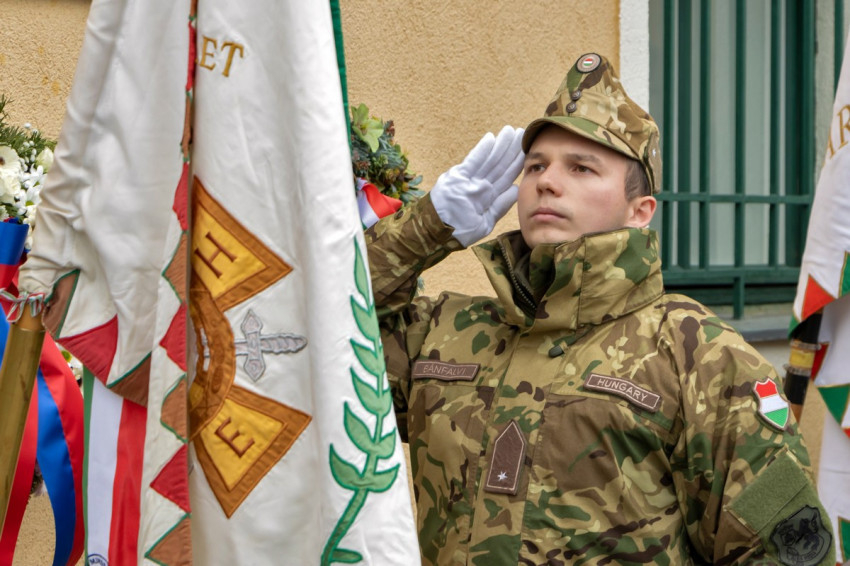 A megemlékezést Lévai Miklós nyugállományú alezredes, a Honvéd Hagyományőrző Egyesület elnöke vezette.