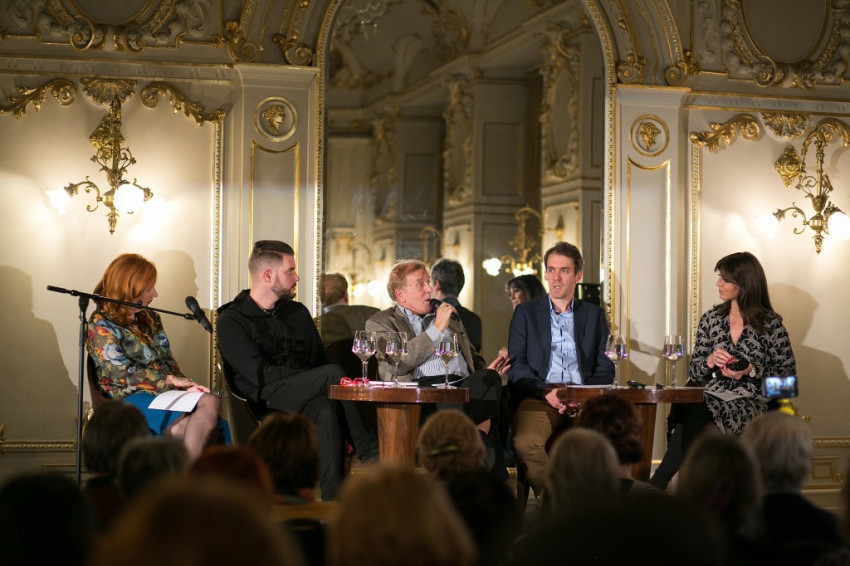 A New York Művészeti Páholy rendezvényeként bemutatkozó Mándy-esten a Vörös szalonban telt ház lesett rám. Aztán szélsebes, de nőies léptekkel elsuhant mellettem fekete alapon ezüstszínű nagymacskákat ábrázoló estélyiben az est háziasszonya; Csáky Attila filmproducer, a férje követte. Biztonságosan beállították az állványra erősített mobilt, amely az eseményt azoknak hivatott közvetíteni, akiknek nem maradt idejük vagy ülőhelyük arra, hogy az elegáns teremben foglaljanak helyet. Kelecsényi László filmesztéta, a pódiumbeszélgetés egyik résztvevője már a színpadon állva várta Juhász Annát, aki mikrofonnal a kezében lépett mellé. Hívószóra Babiczky Tibor költő, Darvasi Ferenc irodalomtörténész és Takács Katalin színművész is csatlakozott hozzájuk. A szerkesztőként és műfordítóként is tevékenykedő lírikus kezében vörösborral teli öblös pohár, emellett a háziasszony sem mehet el: a bemutatás alapvetően egy név és egy titulus egymás mellé helyezéséből áll, most mellé került egy adalék („egy jó pohár borral”), meg egy miért-is-ne kommentár („igaza is van”). Ez is azt mutatja, ezek nem szakmai, hanem értelmiségi közönségnek szánt, oldott beszélgetések.