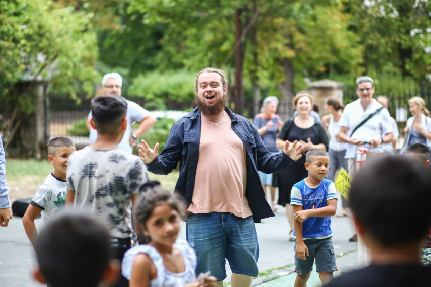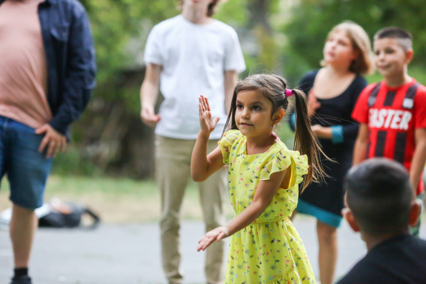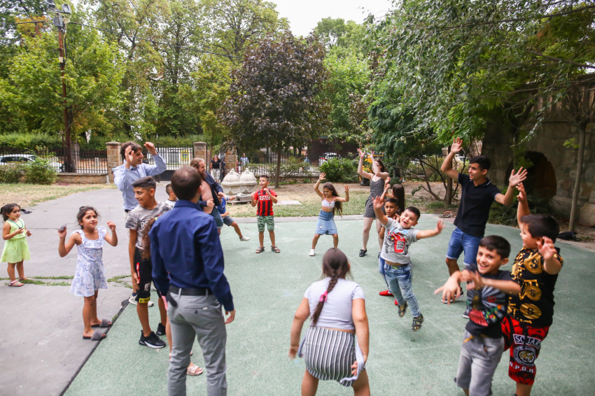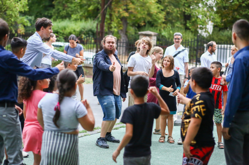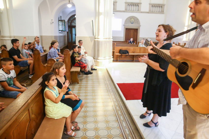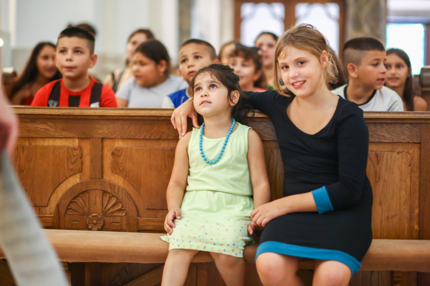 A plébánia fiataljai, cserkészei ültek a padokban a roma gyerekek között, a szentmise után pedig fergeteges játékkal varázsolták el őket az udvaron.