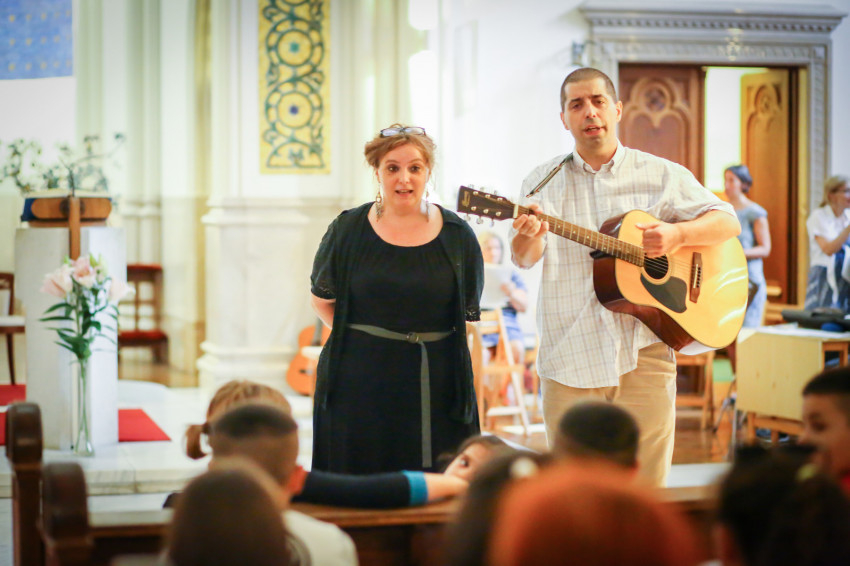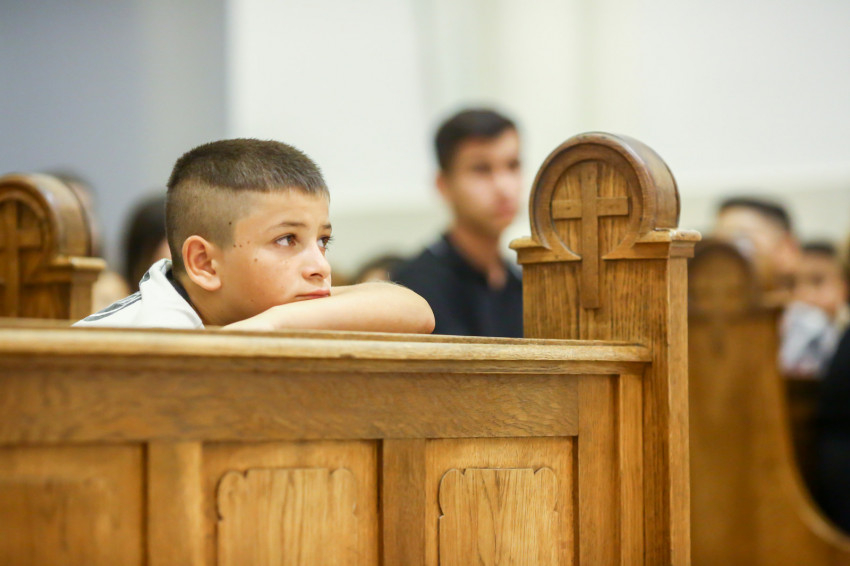 Gyuri atya – ahogyan itt mindenki hívja – közvetlenül szólt a gyerekekhez, akik láthatóan otthon érezték magukat mellette és segítőik mellett, bár többen közülük soha nem léptek még be a templomba. Egy spanyolországi csatornáról mesélt, amely kétezer éven át szállította a vizet, és amikor újat építettek helyette, kiszáradt, szétporlott.