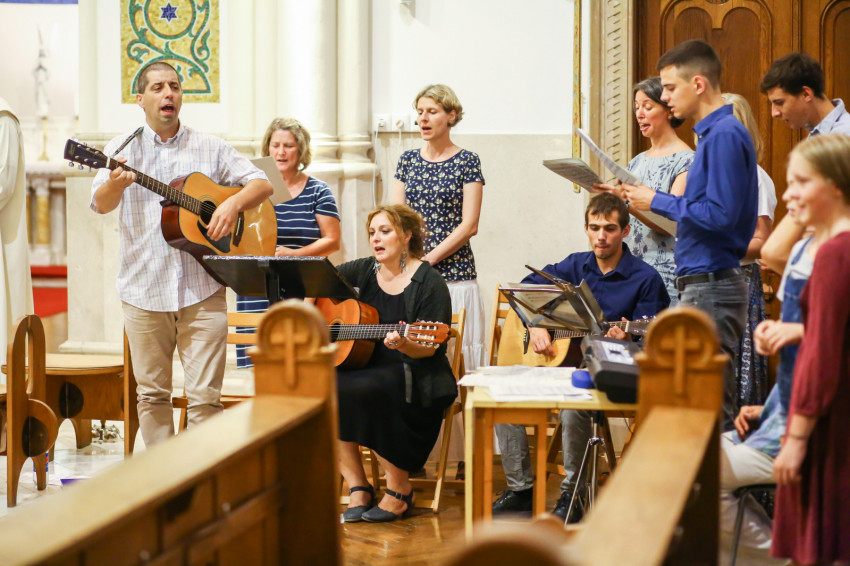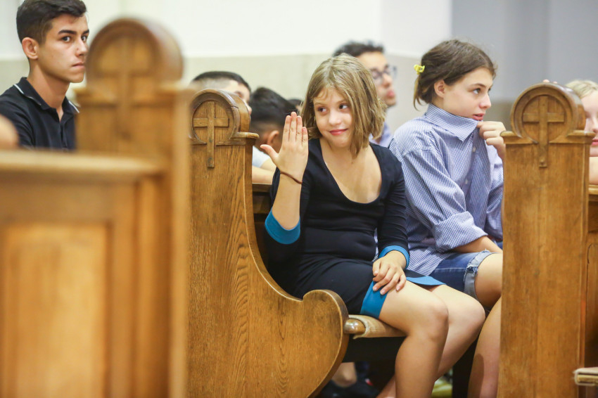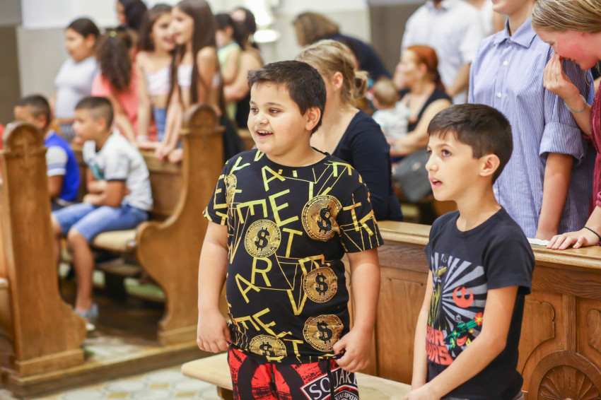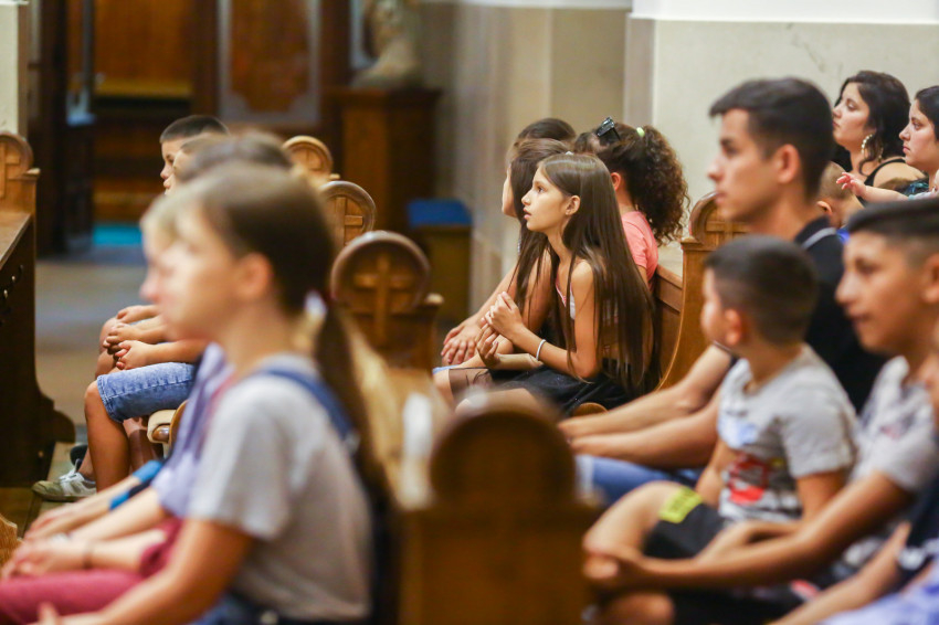 Vidám hangulat fogadott Zugligeten, a templomhoz vezető lépcsősoron lelkesen szaladtak fel a gyerekek, üdvözölték nevelőiket és a plébánia fiataljait, csupa mosoly volt mindenki.
