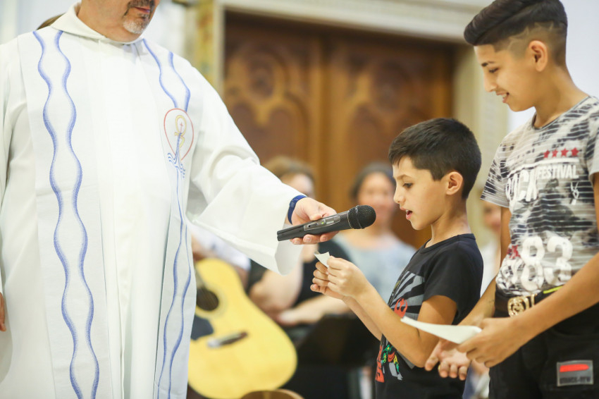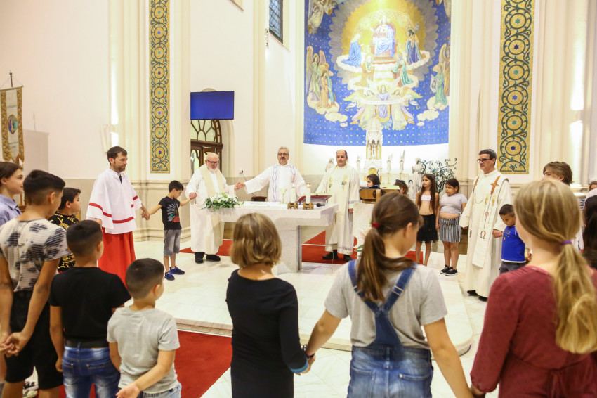A hívek könyörgéseiben számtalan dologért adtak hálát: a zugligeti közösségért, a nevelőkért, a pedagógushallgatókért, a támogatókért, az önkéntesekért, a barátságokért… Kérték az Urat a mélyszegénységben élőkért, azokért, akik látták a háború szörnyűségét, a békéért. A Miatyánk után a gyerekeket az oltár elé hívták kézfogásra, majd mindenki megkapta emlékül a Jézust és Cirenei Simont ábrázoló képet.