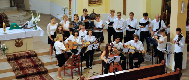 Panni: Arra törekszünk, hogy a liturgiának megfelelő szövegeket énekeljünk. Egyfajta válogatás előzi meg a készületeket a több mint kétszáz dalból álló repertoárból. Figyelünk az adott evangéliumi szakasz témájára, mondanivalójára, a zsoltárokra. Az állandó részeket is szigorúan kezeljük. Igyekszünk megfelelni a liturgia előírásainak, ugyanakkor élünk a minimális szabadsággal.