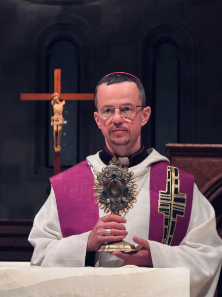 Ugyanakkor azt is világosan látta, hogy Ukrajnának, az ott élő szenvedő embereknek nem rá, hanem Szent Benedekre van szükségük, „egy csendes, erős és imádkozó harcosra, aki az égben érte és értük is imádkozik”. Ez az élmény és felismerés vezetett el a március 13-i szentmiséhez, amelyben Hortobágyi Cirill főapát ünnepélyesen átadta Szent Benedek csontereklyéjét Lucsok Miklós püspöknek.