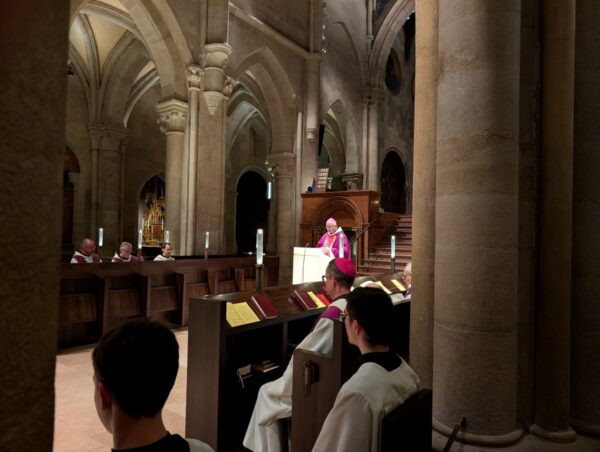 A szentmise homíliájában Hortobágyi Cirill atya az evangélium kapcsán arról beszélt, hogy az egész élet tengelye a legfőbb parancs: „Szeresd az Urat, a te Istenedet…, és szeresd felebarátodat, mint önmagadat.” Amikor az írástudó ezt megérti, Jézus különös módon válaszol: „Nem vagy messze az Isten országától.” Azaz még nem vagy benne. A főapát hangsúlyozta, hogy az értelem közel vihet Isten országához, de a kapun csak a szeretet visz át.