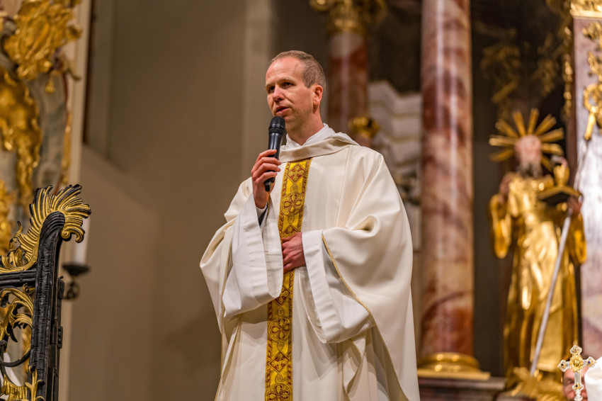 Zsódi Viktor SchP piarista tartományfőnök prédikációjában a mai világ bizonytalanságából indult ki, ahol „az emberek szoronganak a jövő bizonytalanságai miatt… keresik a kiutat”. Rámutatott, hogy Szent Benedek példája ma is hív bennünket: kilépni a megszokott biztonságból, és rábízni magunkat Isten vezetésére.