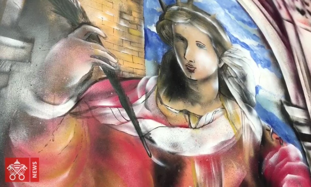 Ez alkalommal Marco Tarascio „street artist”, művésznevén Moby Dick fogott össze kollégáival, hogy parancsnokuk vezetésével kifessék a Szent Borbála-kápolna központi falát. A kápolna a római katasztrófavédelmi központban található, ahol a történelem találkozik a jelennel egy modern építészeti projekt keretében.