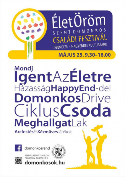 – A háromnapos rendezvény május 24-én, pénteken este 6 órakor szentmisével kezdődik a Szent László domonkos templomban, ahol megáldjuk Szent Domonkos sorianói kegyképének másolatát. Másnap, 25-én, szombaton a Nagyerdei Kultúrparkba várjuk a családokat, a legifjabbakat a legkülönbözőbb gyermekprogramokkal: arcfestéssel, népi gyermekjátékokkal, kézműveskedéssel egybekötött hangulatos gyermeknapi forgatagra. Itt lesz lehetőség a különböző standoknál szakemberek segítségével megismerkedni a Ciklus Csoda elnevezésű programmal, amely a természetes családtervezés módszereit foglalja magába. Lesznek, akik az abortusz kockázatáról is tájékoztatást adnak, valamint tanúságtételeket hallhatunk azon családoktól, akik sérült – Down-szindrómás, autista – gyermekeket nevelnek. Sokan félnek az ilyen gyermekek vállalásától, de őket is Istentől kapjuk, akiknek joguk van az életre. Nem teszik tönkre a család életét, hanem különleges szeretetükkel kincsként vannak jelen szerető családjaik körében.